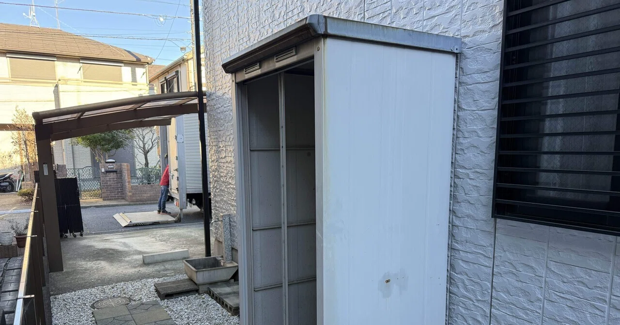 お客様のご自宅敷地内に設置されていたLLサイズの大型物置を、中身入りの状態で撤去させていただきました。