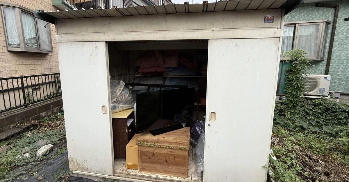 お客様のご自宅敷地内に設置されていたLLサイズの大型物置を、中身入りの状態で撤去させていただきました。